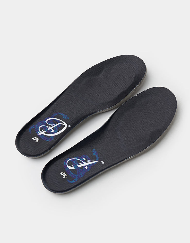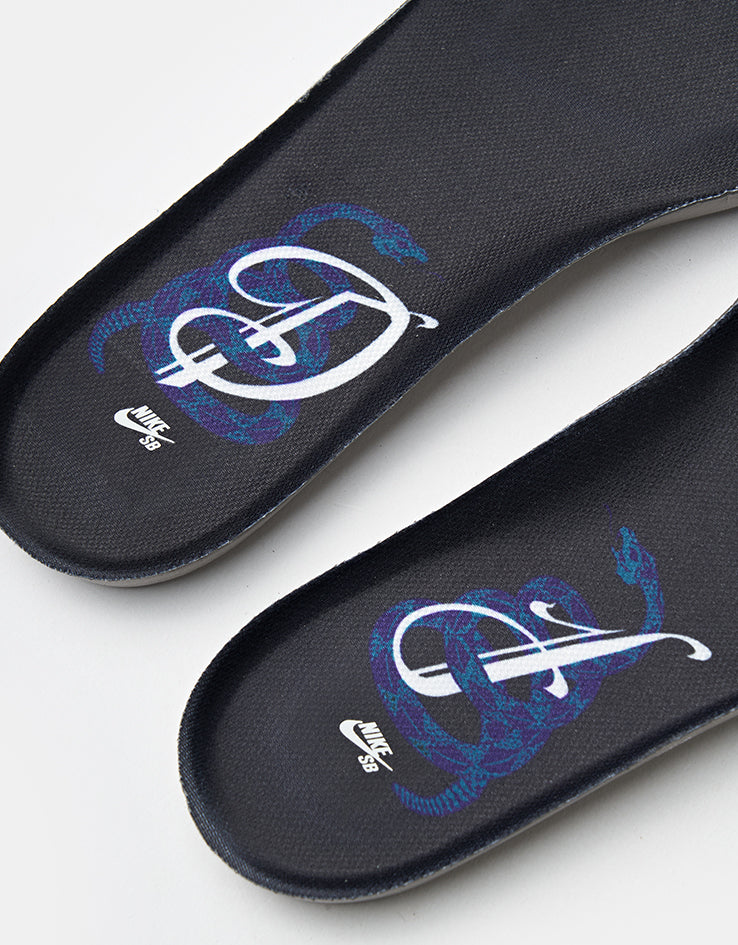 Underfoot, it’s built with all the tech you would expect from a shoe in the SB Dunk lineup, including a padded low-cut collar for comfort, cushioned PU foam insole with Nike Zoom Air Heel insert, and a rubber outsole with the Dunk's classic tread for grip and durability. This is a shoe built for skateboarding, not hype. The attention to detail and skateboard-forward design blend perfectly with the love for his city, delivering a Dunk of MVP status.
